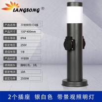 泥之昕户外防水防雨16A插座IP66接线板充电桩304不锈钢圆柱带灯明装立式 圆款黑色不锈钢带灯-10A