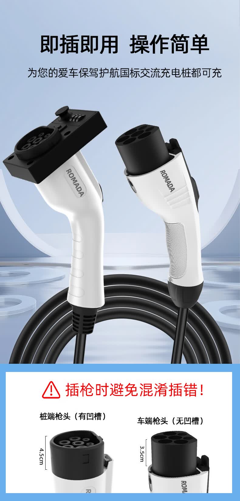 ROMADA零跑C01/C10/C11/T03新能源充电桩7kw延长线公母双头交流枪延长线 16A/3.5kw充电枪桩延长线3米 官方标配