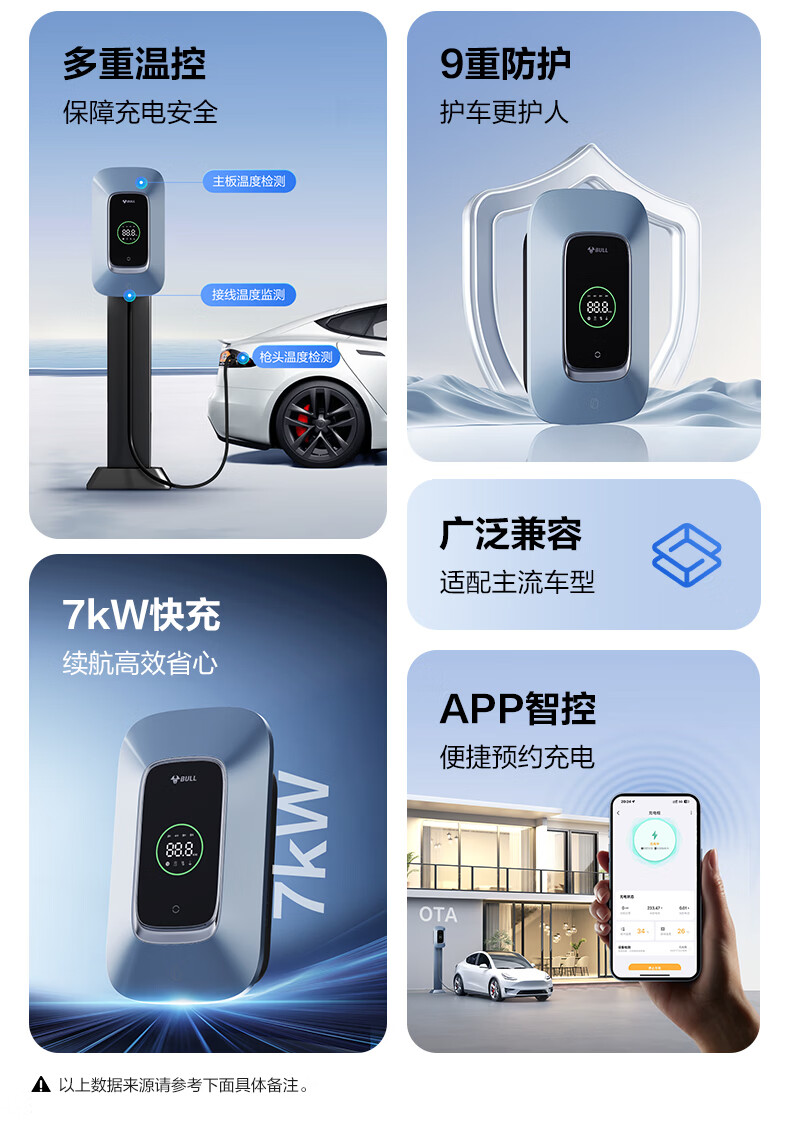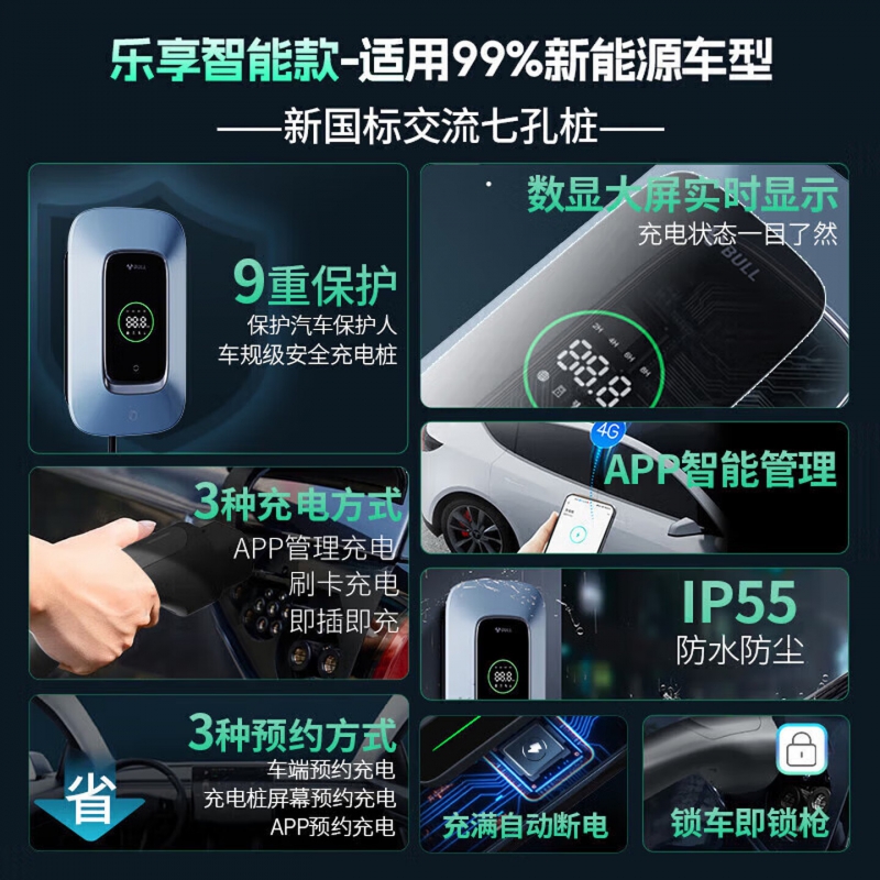 公牛充电桩枪新能源电动汽车家用交流桩7/11/21KW适用于特斯拉小鹏极氪理想华为问界奔驰小米阿维塔