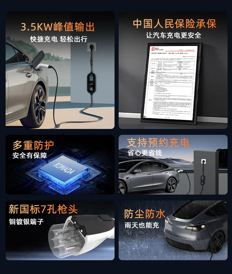 涌鑫7KW家用充电桩快充放电枪新能源电动汽车立柱充电枪32A接地宝特斯拉蔚来吉利理想比亚迪充电箱