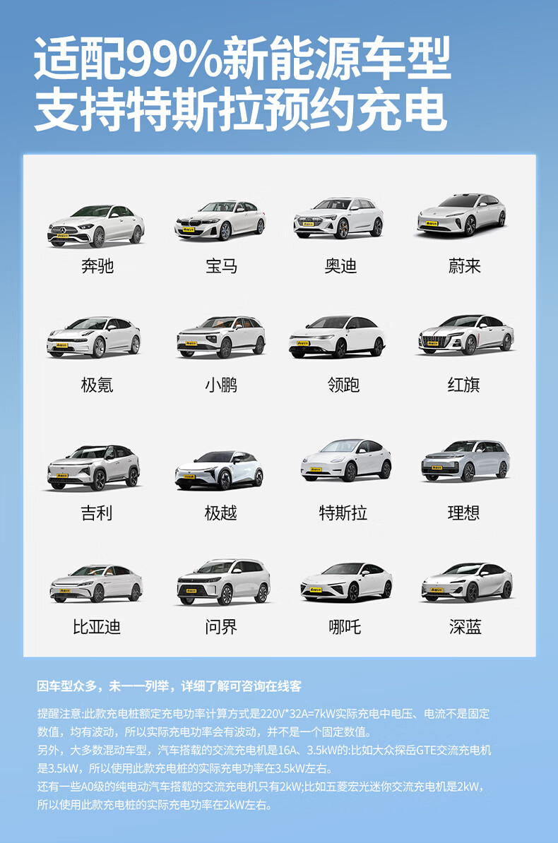 公牛充电桩枪新能源电动汽车家用交流桩7/11/21KW适用于特斯拉小鹏极氪理想华为问界奔驰小米阿维塔